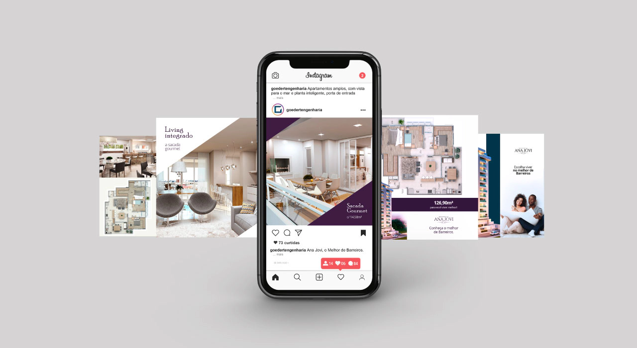 Essa identidade visual foi refletida em todos os materiais de marketing, desde catálogos, painel front, redes sociais, até a sinalização no local, garantindo uma experiência consistente e memorável para os potenciais clientes.