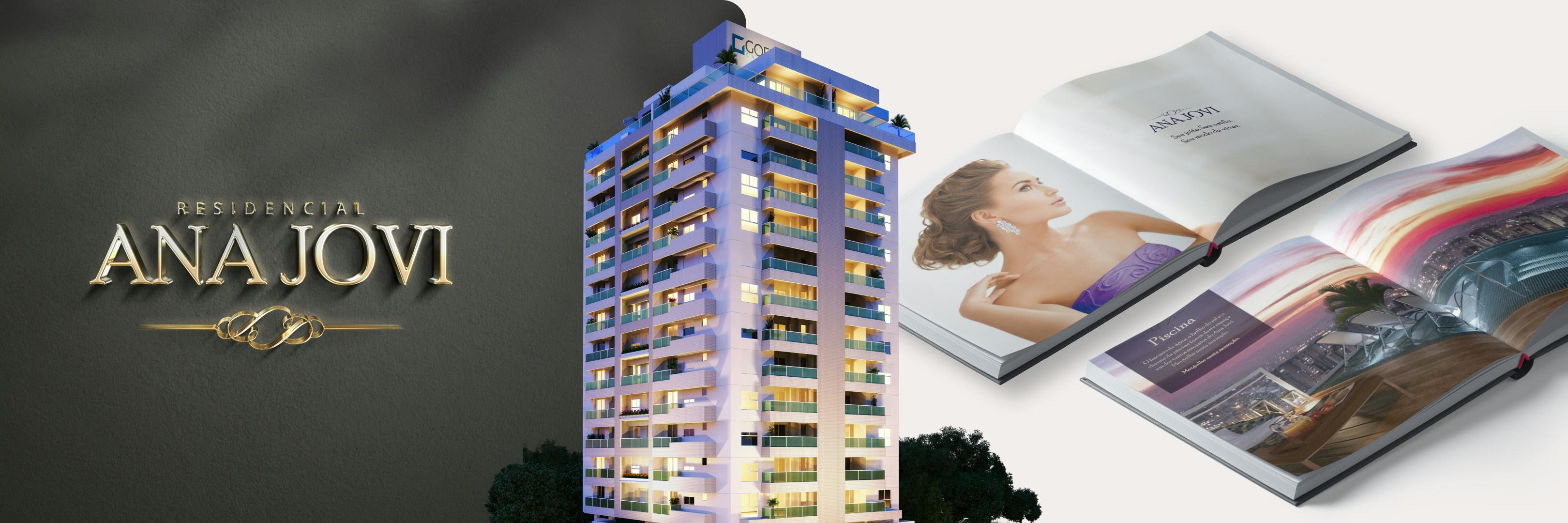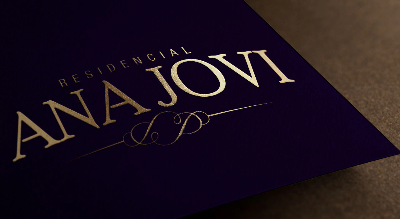 A identidade visual do Ana Jovi foi cuidadosamente planejada para transmitir os valores de modernidade, exclusividade e requinte. A tipografia serifada em letras maiúsculas transmite luxo, enquanto a cor dourada comunica riqueza e prestígio.