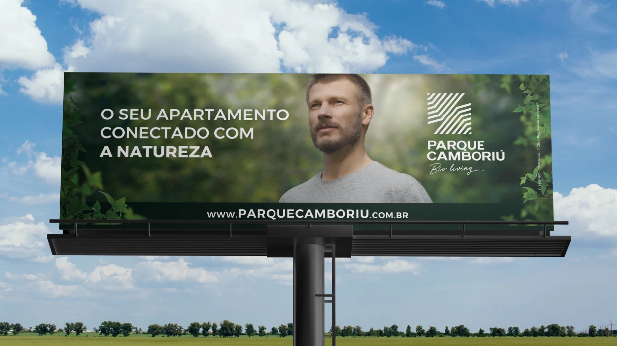 Quando desenvolvemos o layout do outdoor do Parque Camboriú, buscamos proporcionar uma comunicação visual impactante que destacasse a integração do empreendimento com a natureza e a qualidade de vida.